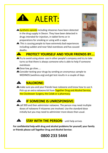ALERT: Synthetic opioids have been detected in the drug supply in Devon